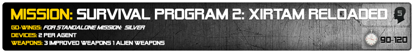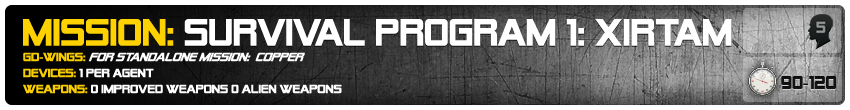 The bulkheads around the team open up, showing several advanced weapons, one of which is clearly alien in origin. The Agents equip themselves and brace for the worst, as the sweet voice of Steelman rings in their headphones "WEEEE are going to start now. YOU are going to get a grasp of the true abilities of these alien invaders... and, who knows... perhaps we'll see what stuff you are made of. START! Execute the Xirtam Reloaded program!" His laughter roars in the commlink, as the holographic simulation comes alive.